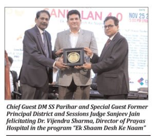 The event was attended by eminent personalities from multiple fields, including IAS, IPS, IRS officers, doctors, Bollywood singers, social workers, members of the judiciary, and others. It is noteworthy that Prayas Multispecialty Hospital, under the leadership of Dr. Vijendra Sharma, has successfully completed two years of dedicated service to humanity. Dr. Sharma shared that his hospital has a highly reputed team of renowned doctors from across the country who strive to provide the best possible treatment to every patient. Earlier as well, Dr. Vijendra Sharma had been honored by Joint Commissioner of Police Vijay Singh (IPS).